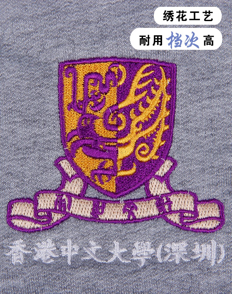 此款為香港中文大學(深圳)團體活動衛衣定制,采用刺繡工藝,拉鏈連帽衛衣。
